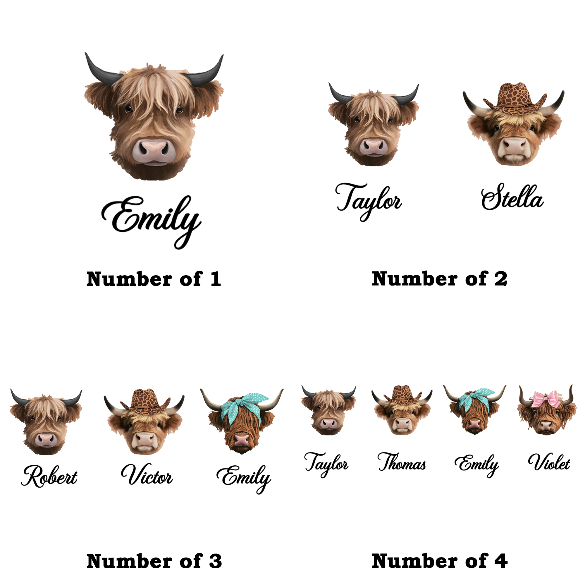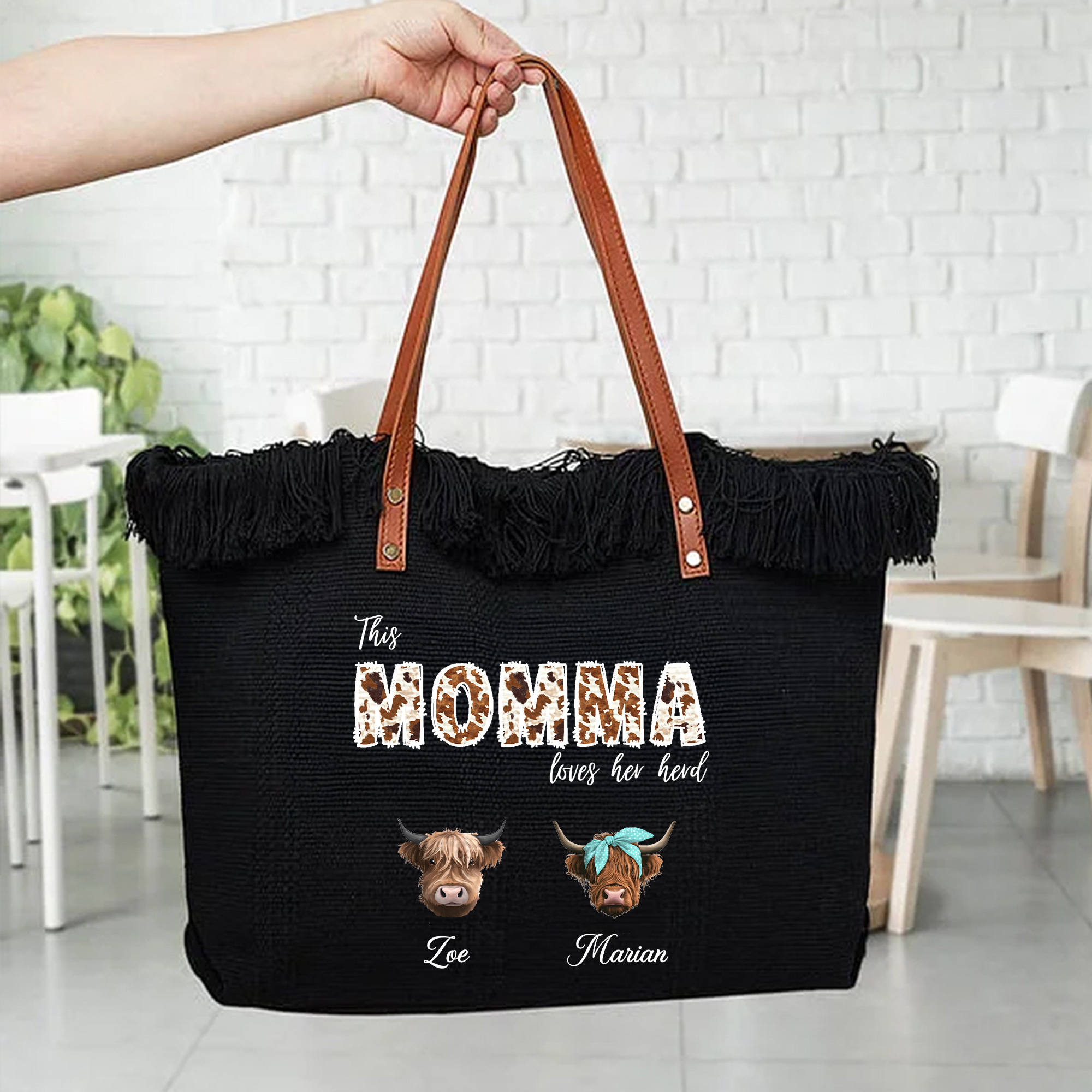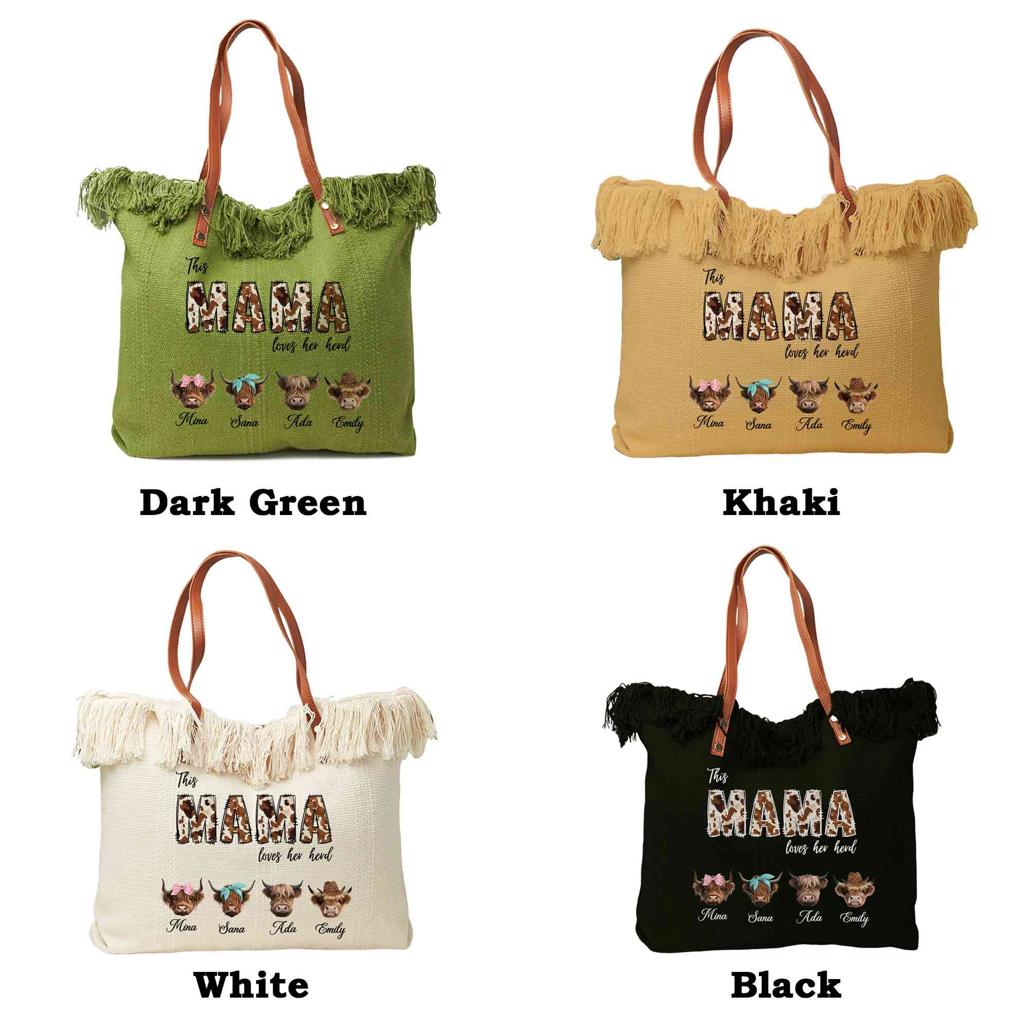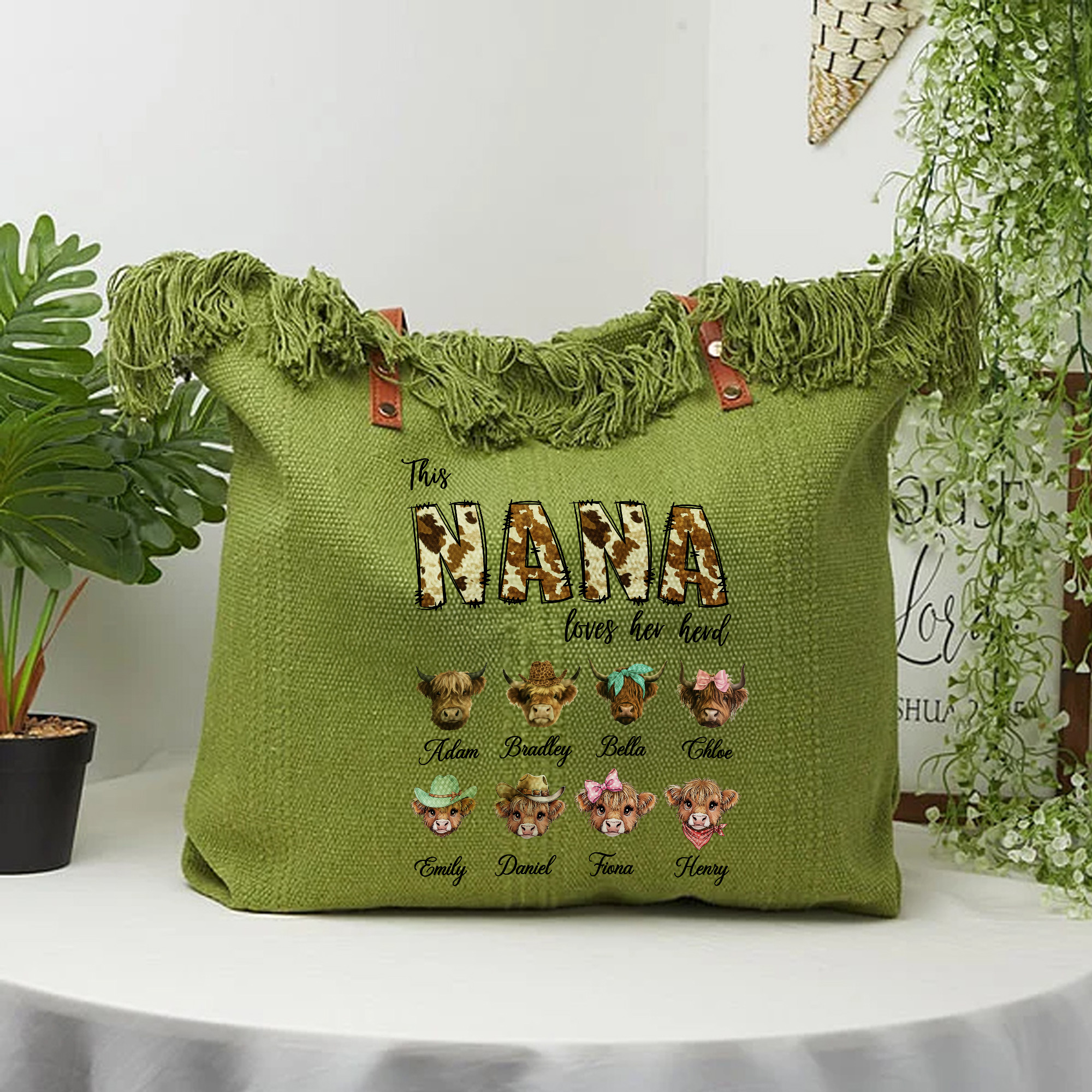 Personalized Family Names - The tote bag can include a highland cow lettering title and multiple custom names to represent children or grandchildren. Each name appears as part of the “herds,” turning the bag into a heartfelt family keepsake. This personalized detail gives the tote a unique story that reflects the love shared within the family.
